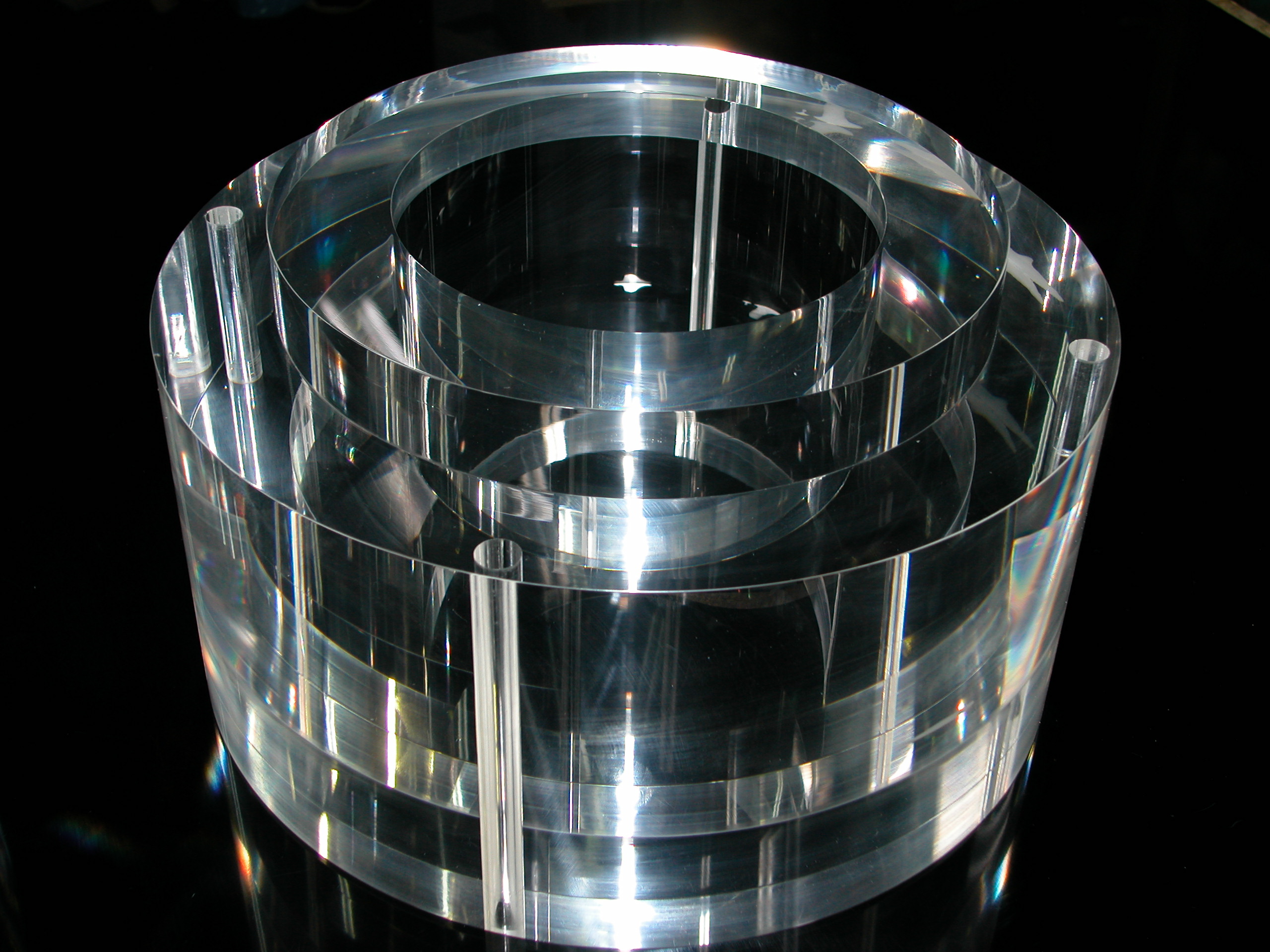 透明感と強度を兼ね備えたアクリル素材を使い、オーダーメイドの加工サービスを提供しています。精密なカットから曲げ加工、接着、研磨まで、用途に応じた最適な技術で、あなたのイメージを形にします。